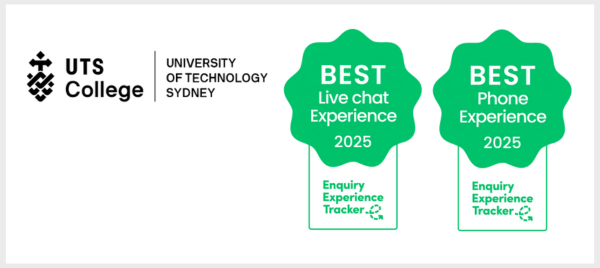 UTS College won two channel awards for delivering the best experience to mystery shoppers via live chat and phone. This means that UTS College recorded the highest enquiry experience score recorded for both channels globally.